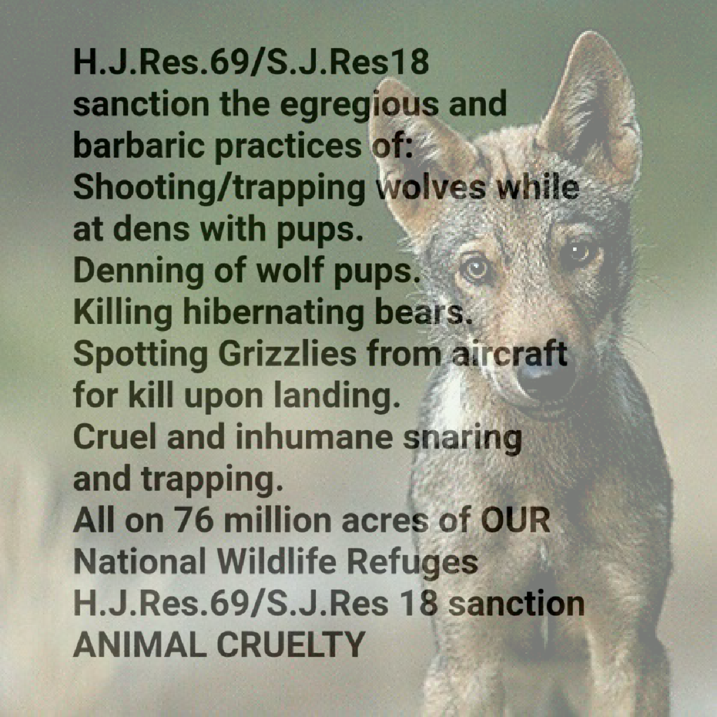 169. Stop #HJResolution69 & #SJResolution18 sanctioning #AnimalCruelty on #PublicLands in #Alaska Refuges @SenatorHeitkamp @SenJohnHoeven