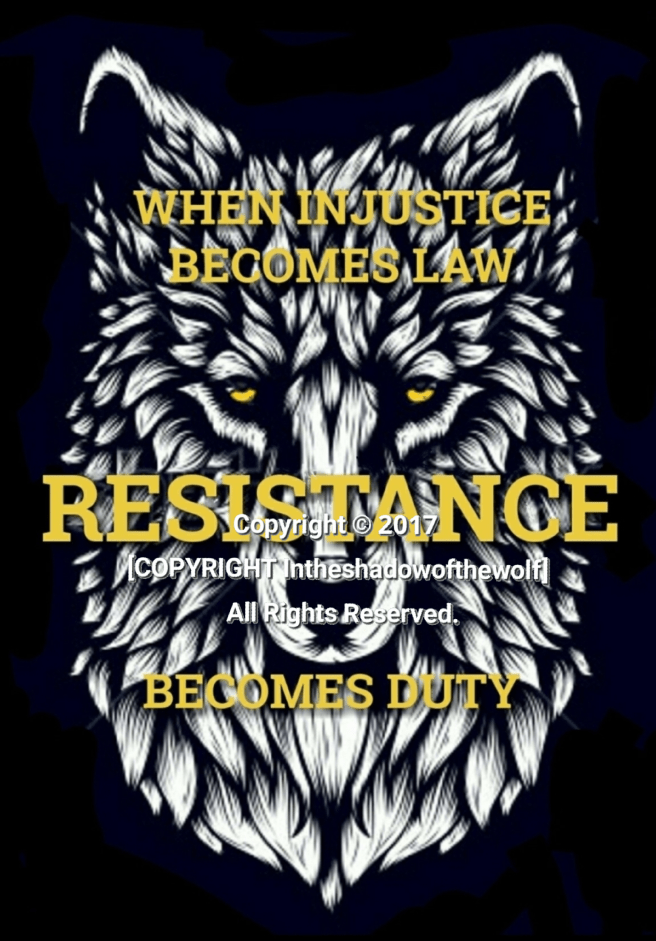 For a wide variety of products including: apparel, posters, vinyl stickers, black totes, throw pillows, stationary, and clocks please visit this link: Resistance Wolf