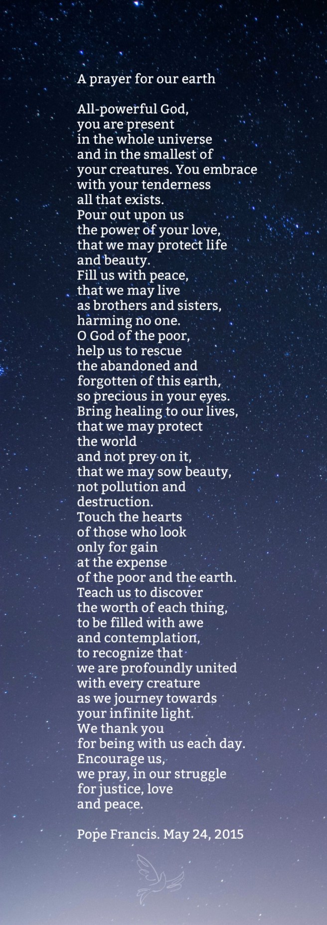 A prayer for our earth Available in greeting cards, notepads, and a small variety of wall art. Tap on image below, or title for details. 100% of profits from this item are donated directly to Earthjustice.