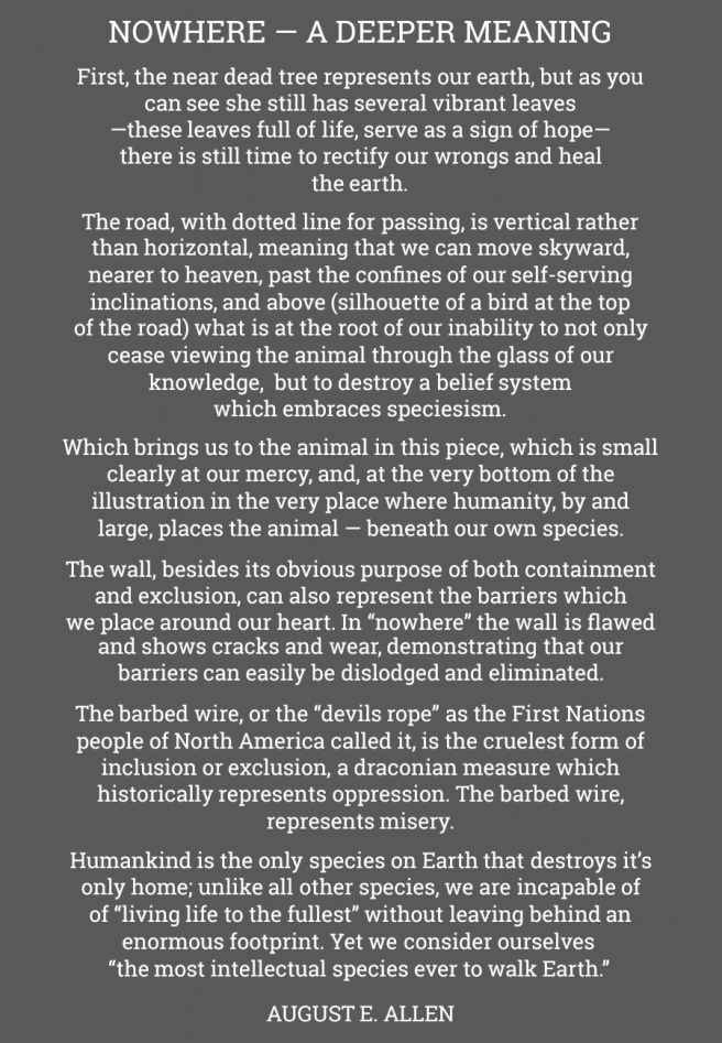 This is one of my favorites, titled nowhere, and is with my very first poem. I would like to tell you a little more about nowhere. At face value the message is clear, however, I endeavor to provide a pathway to a deeper meaning with this illustration...(read more here)