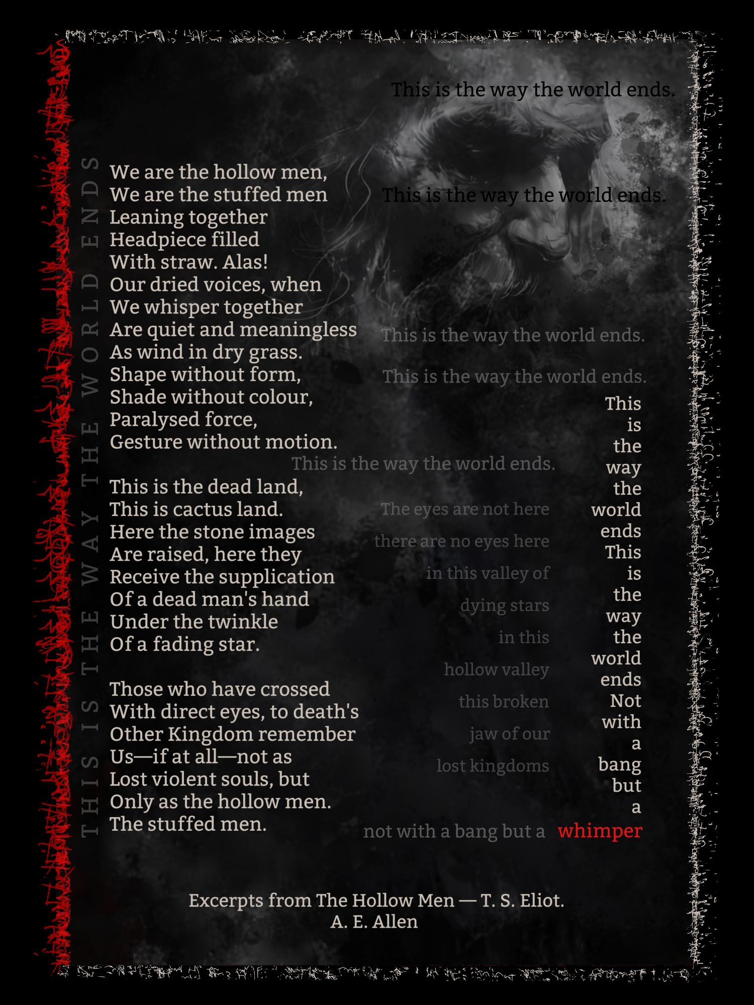 This is the Way the World Ends–Not With a Bang but a Whimper Available on a limited number of products including wall art and totes. Tap on title above for details.