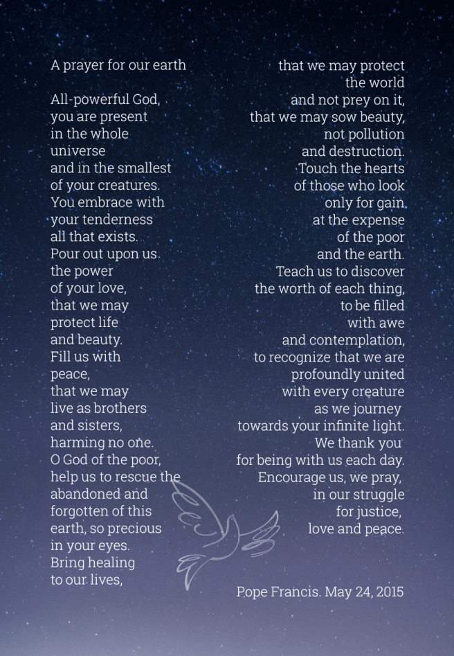 A prayer for our earth This is an alternate of our original, formatted to accommodate greeting cards, journals, notepads, and postcards.