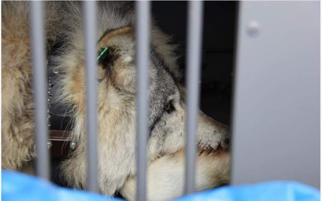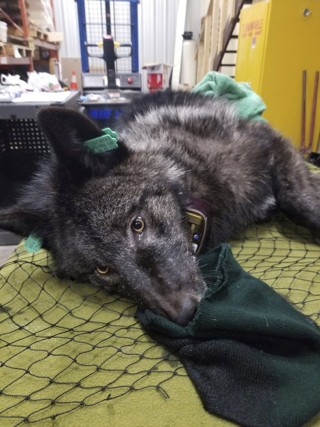 This male wolf, caught in Minnesota, was released on Isle Royale and found dead weeks later.