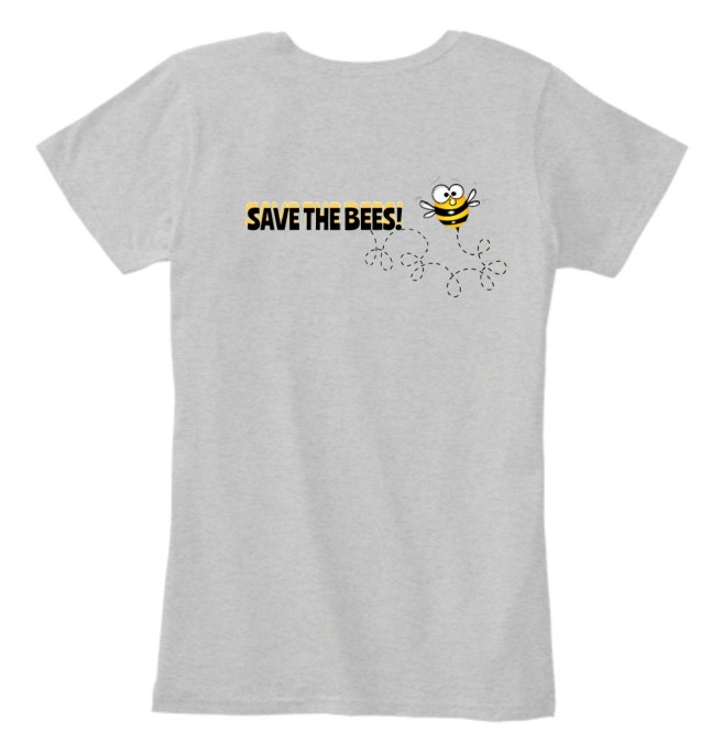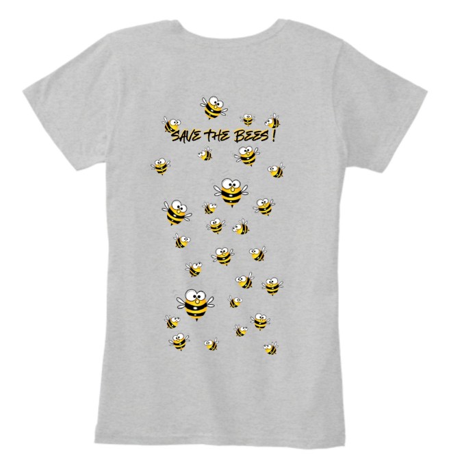We love bees so much that we have a second version of our bee shirts with 3 more designs. Save Bees offers a different design for premium tees, another for classic tees, and yet another for graphic tees! Shown below is one of the latest designs.