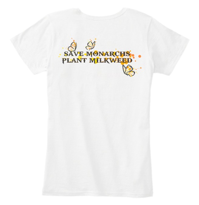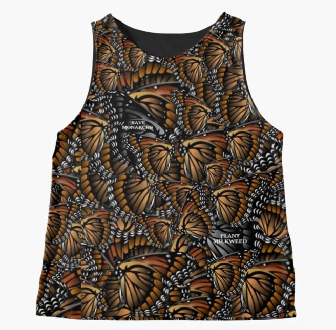 Cover yourself with monarch butterflies! Check out our beautiful tee called Save Monarchs – Plant Milkweed. This version is available in sublimation tees and tanks: