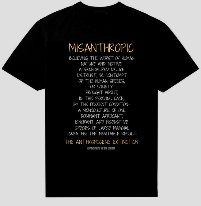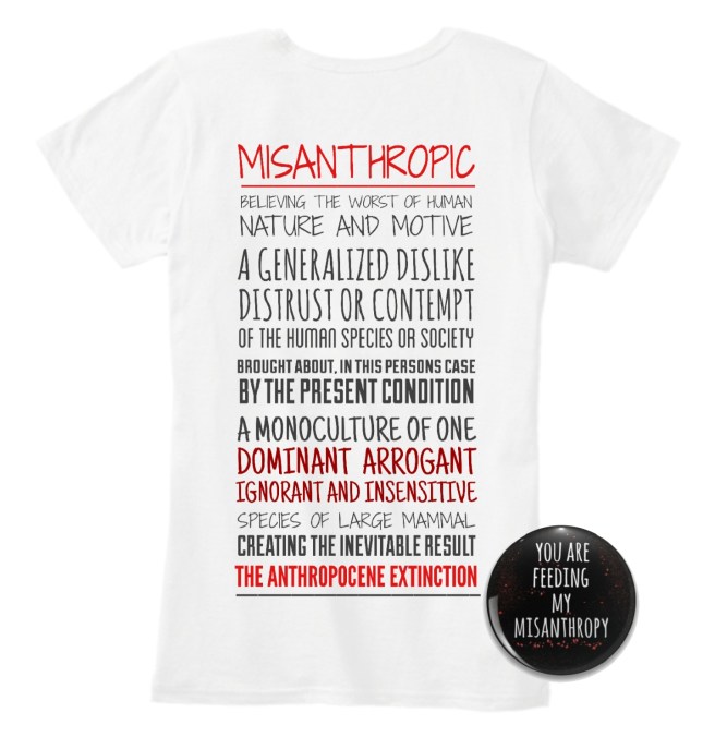 Misanthropy Available in several different designs in a wide variety of tees, and may be printed on either the front or the back of shirts (with the exception of graphic tees.