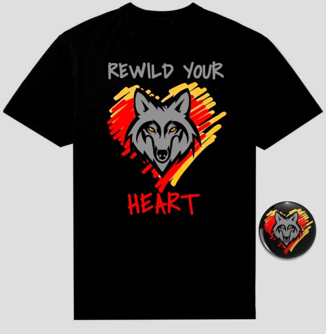 Rewild Your Heart/2 Available in a wide variety of tees (including kids) and graphic tees. We also have a matching pin button: