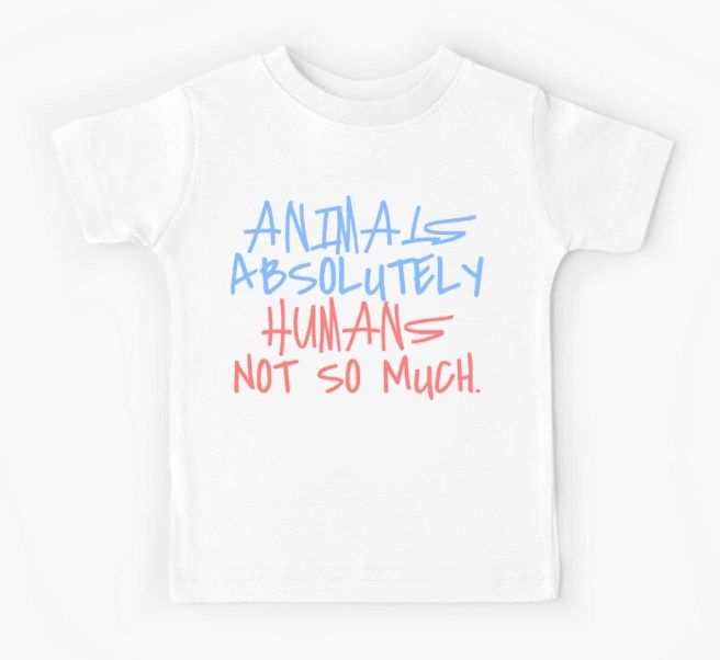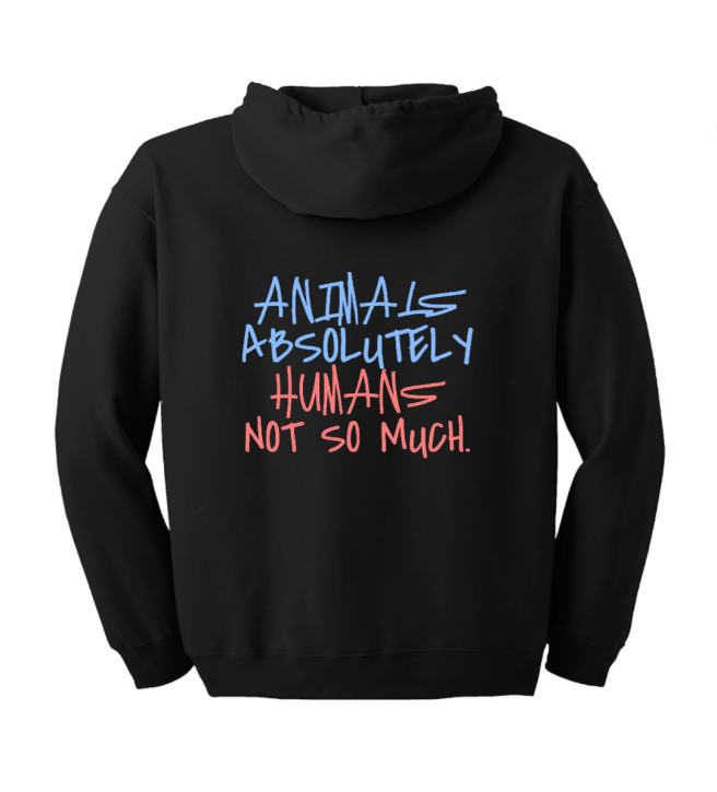 •Animals, absolutely Available in tees, tanks, and sweatshirts in a variety of colors. Also available in a variety of accessories, and masks.