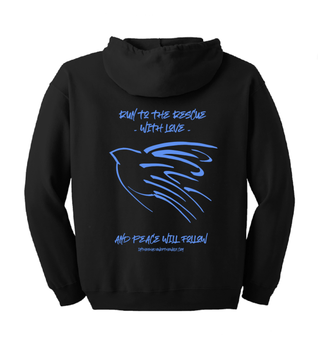 Run to the rescue with love and peace will follow Available in two versions, one for regular tees, tanks and sweatshirts in a variety of colors, and a more detailed version for sublimation tees and sleeveless tops: