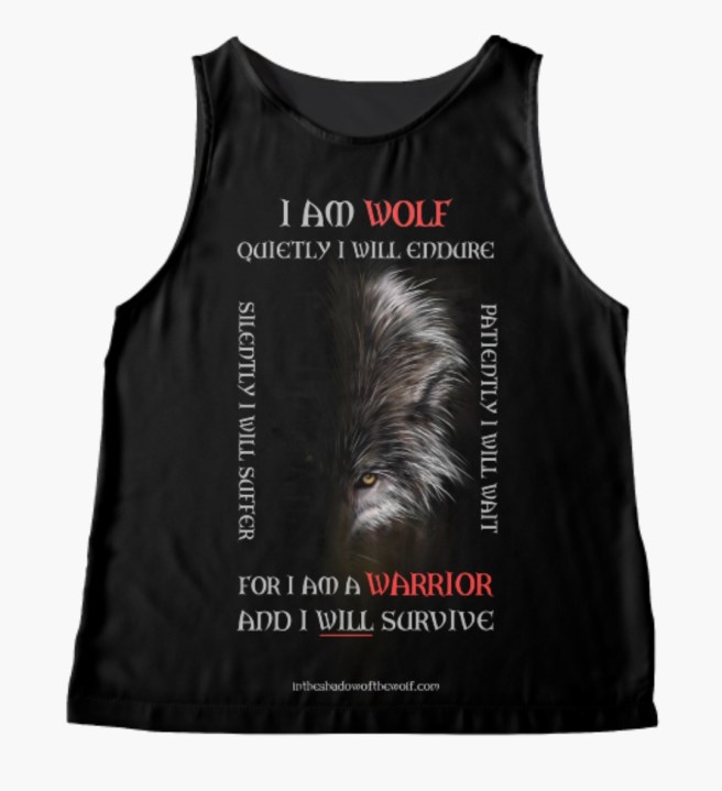 The Strength of the Wolf Available in sublimation tees, tanks, and chiffon tops only.