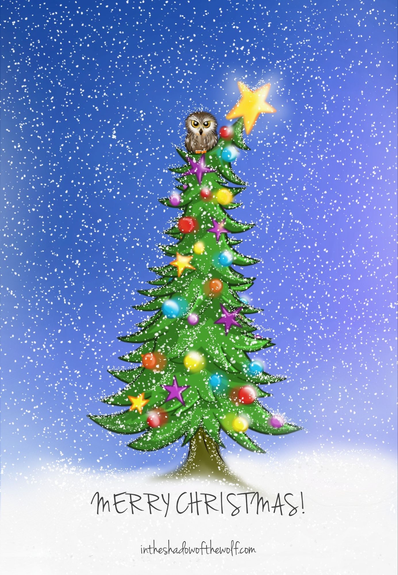 The entire Rockefeller Center Christmassy debacle led me to add another painting to my Christmas collection. My little owl, however, sits atop his beautifully decorated tree, that is very much alive, and in the forest. As it should be.