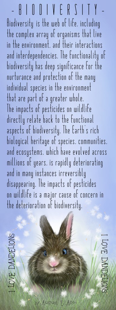 Through I Love Dandelions, I endeavor to accomplish several things: arouse a love for all of nature and bring biodiversity back to all those sterile and toxic lawns.