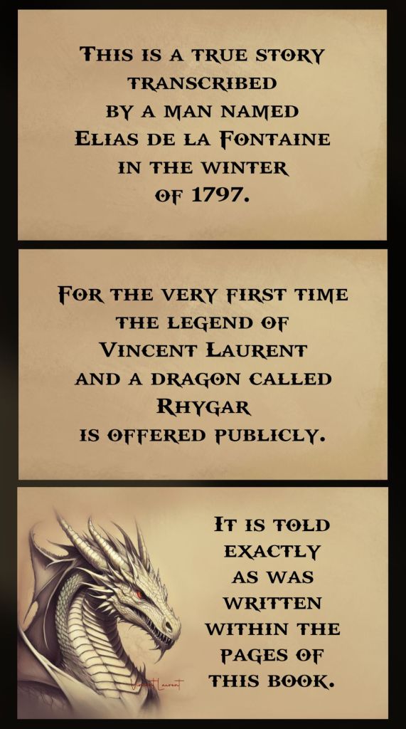 For the very first time the legend of Vincent Laurent and a dragon called Rhygar is offered publicly. It is told exactly as was written within the pages of this book.