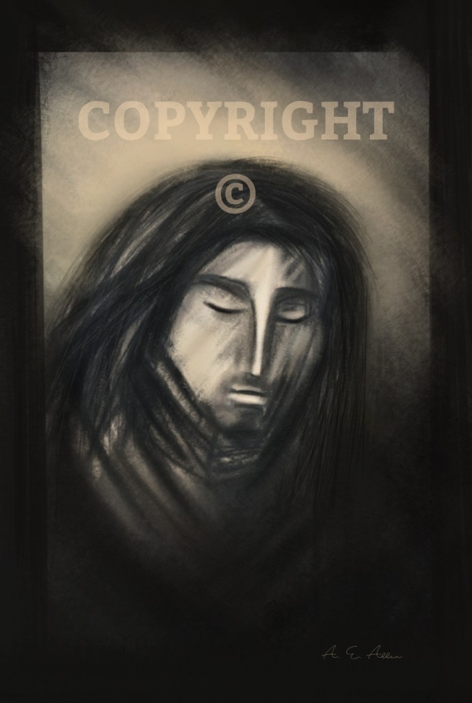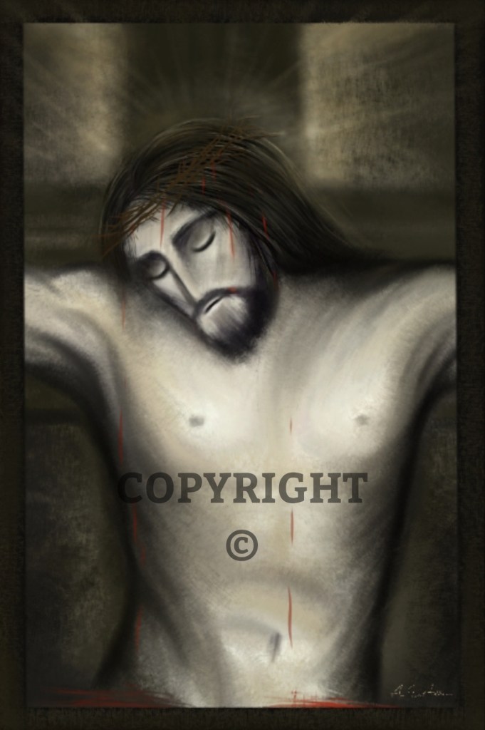 The piece below is called The Crucifixion: Last Breath. This print is not available anywhere else in our shops, nor in any other art forms. The Crucifixion: Last Breath is available in small (8″×12″) or large (16″×24″).