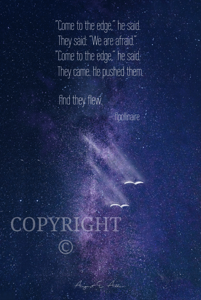 Another celestial favorite with a thought-provoking message. This piece is called And They Flew, and is available in small (8″×12″) and large (16″×24″). Unfortunately the low resolution copy shown here does not come close to how stunning this piece is; when viewing the original you feel as if you are in the heavens with the stars twinkling all about!