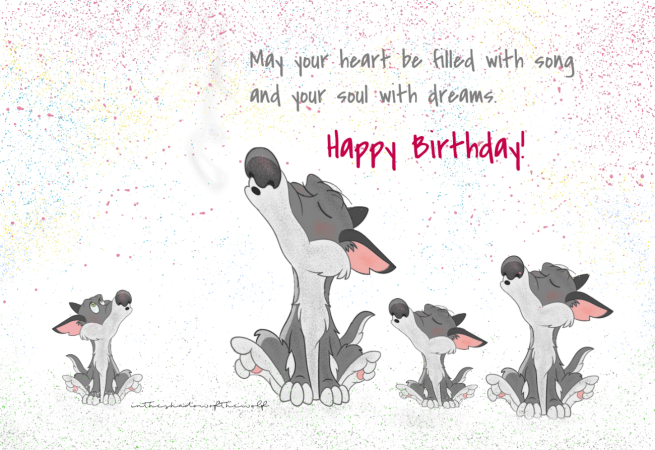 Wolfish Birthday Bash Available in a small variety of products including greeting cards, postcards, stickers and several accessories. 19 products in all!